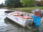 First two pics is a 1957 Model R. The motor is a 1956 30hp powerhead on a 1954 25 hp lower unit. Top speed 38 mph.